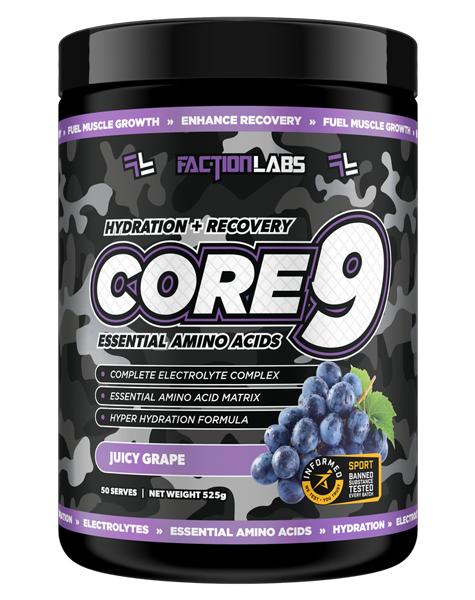 Introducing Faction Labs CORE 9 (EAA + BCAA), the ultimate amino acid complex for pre and post-workout support. With Faction Labs' commitment to innovation, this upgraded version of CORE 9 is designed to take your performance to the next level.